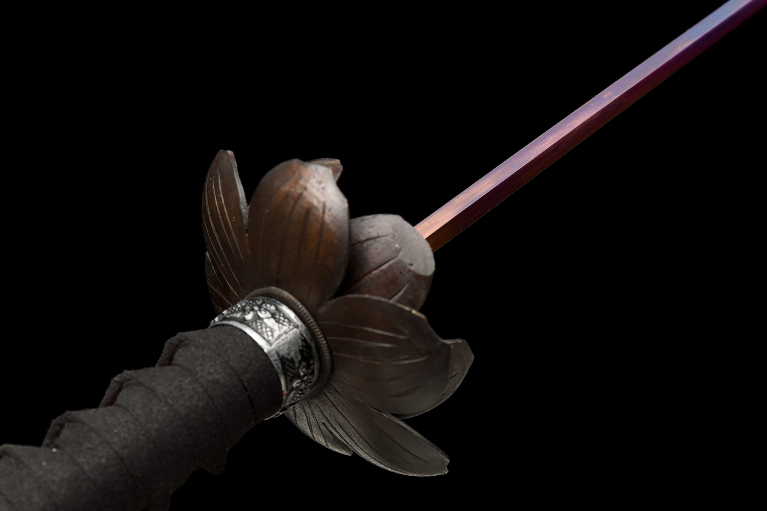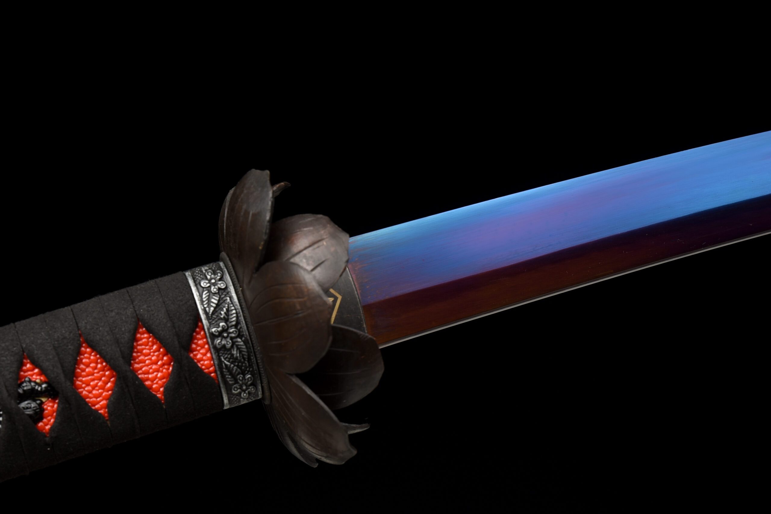 - Habaki (鎺) : Laiton noir orné d’une fleur de lotus.