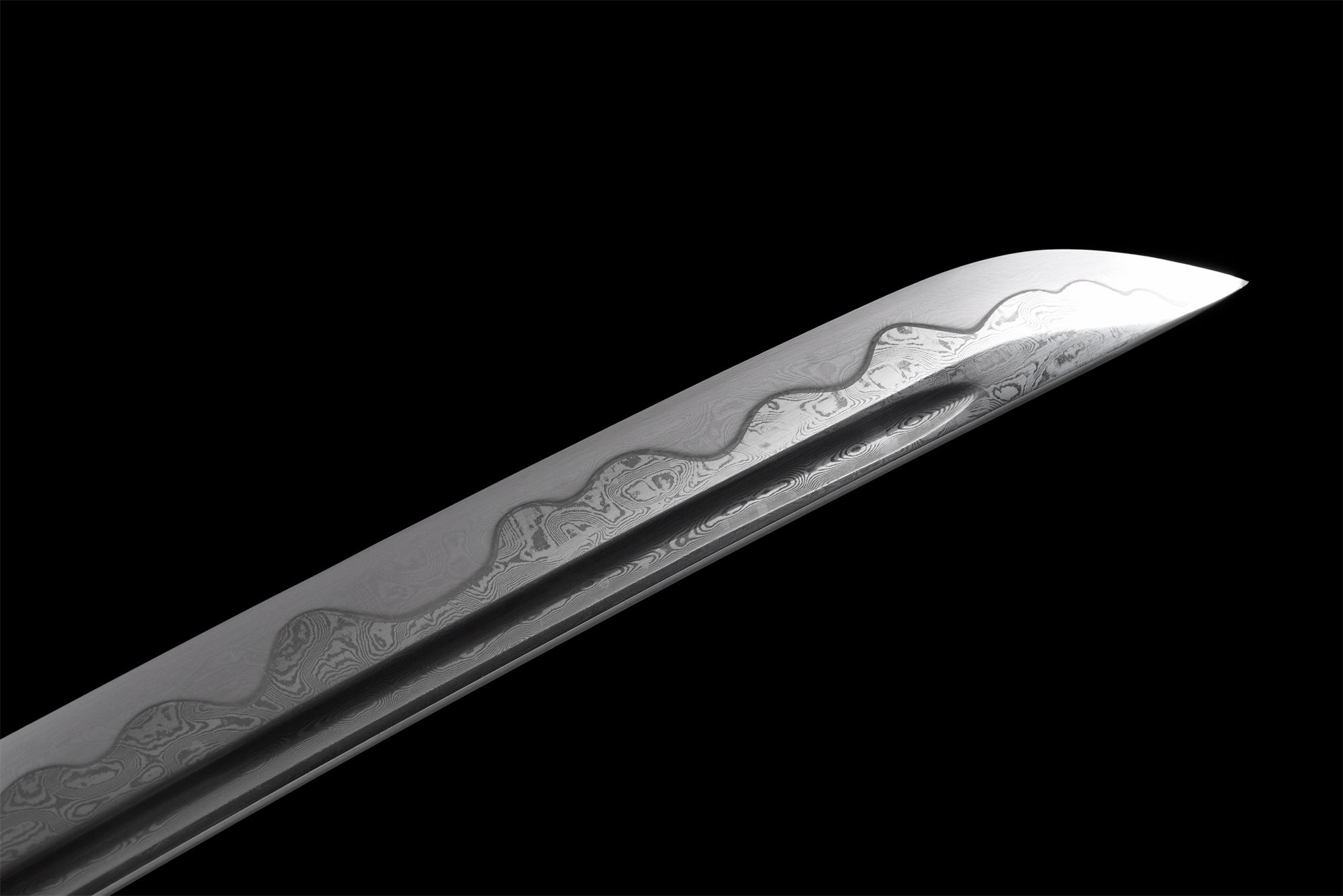 Le terme “Damas” évoque l’art ancestral du forgeage en acier de Damas, technique qui révèle des motifs ondulés caractéristiques à la surface de la lame. Cette méthode de forge, associée au Hamon traditionnel japonais, crée une harmonie parfaite entre l’héritage métallurgique oriental et occidental. Le nom de ce katana reflète cette fusion unique où la beauté des veines de l’acier Damas se marie avec l’élégance de la trempe différentielle japonaise.