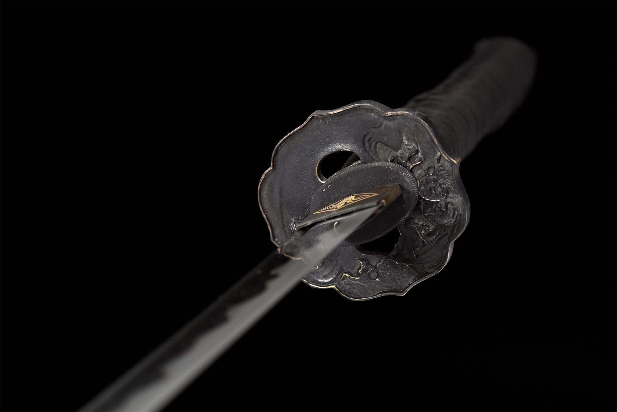 - Garde (Tsuba 鍔) : Arrondie en forme de fleur de lotus en cuivre noir.