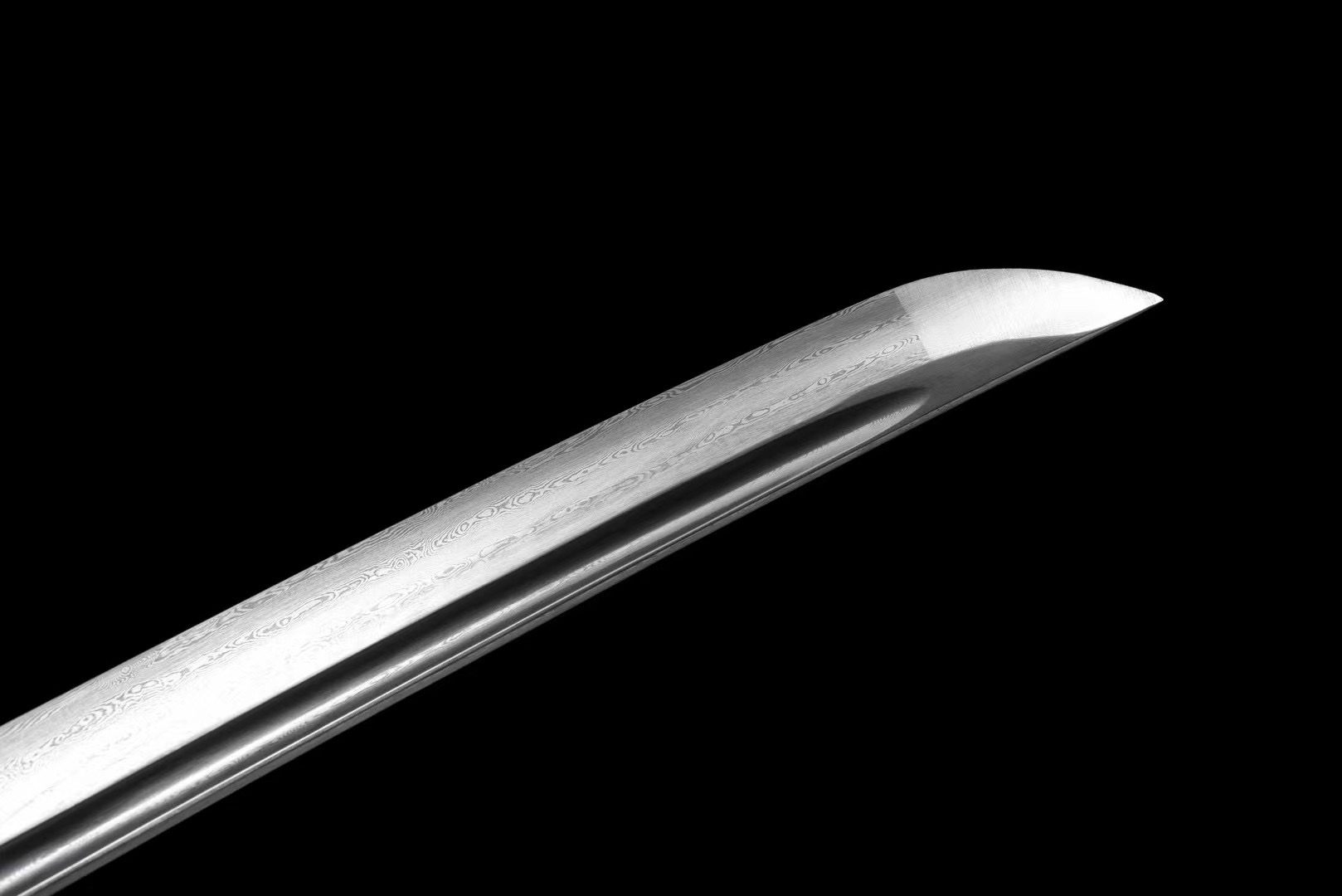 - Lame en acier Damas couleur acier naturel, affûtée ou non affûtée au choix, full tang.