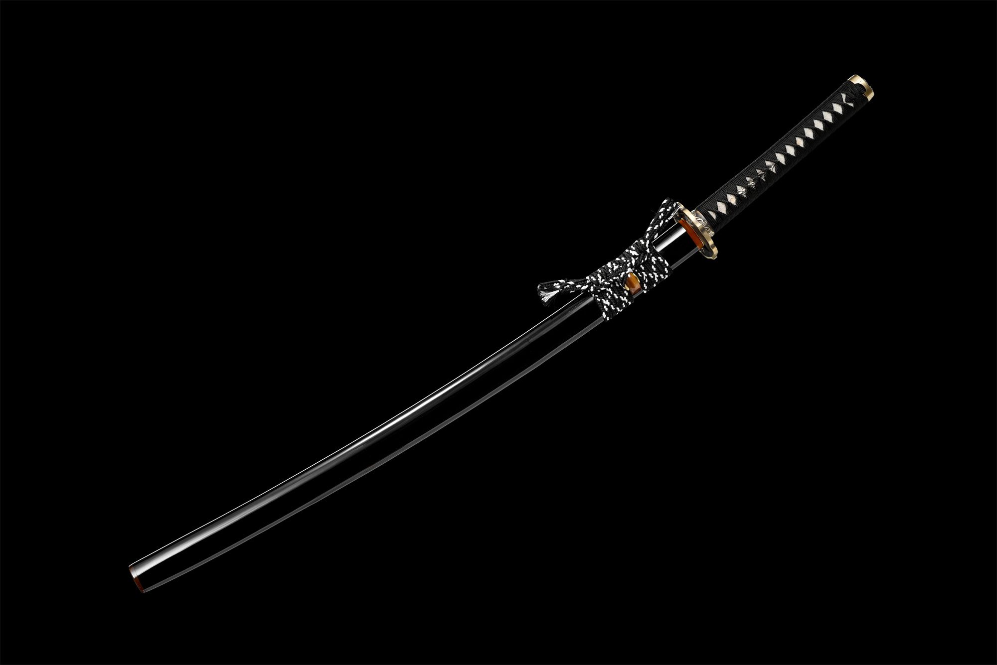 - Tsuka-ITO (柄糸) : Tressage noir en motif losange traditionnel.