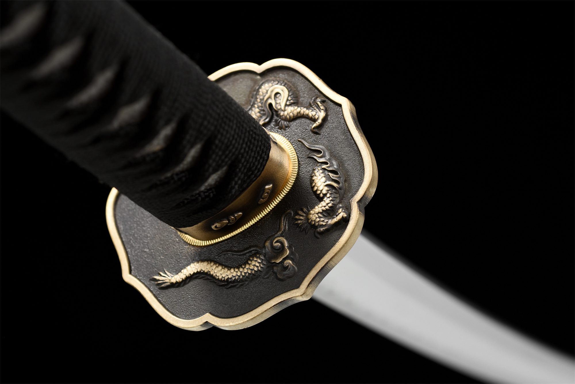 - Fuchi (縁) : Cuivre avec motif de dragon enroulé.